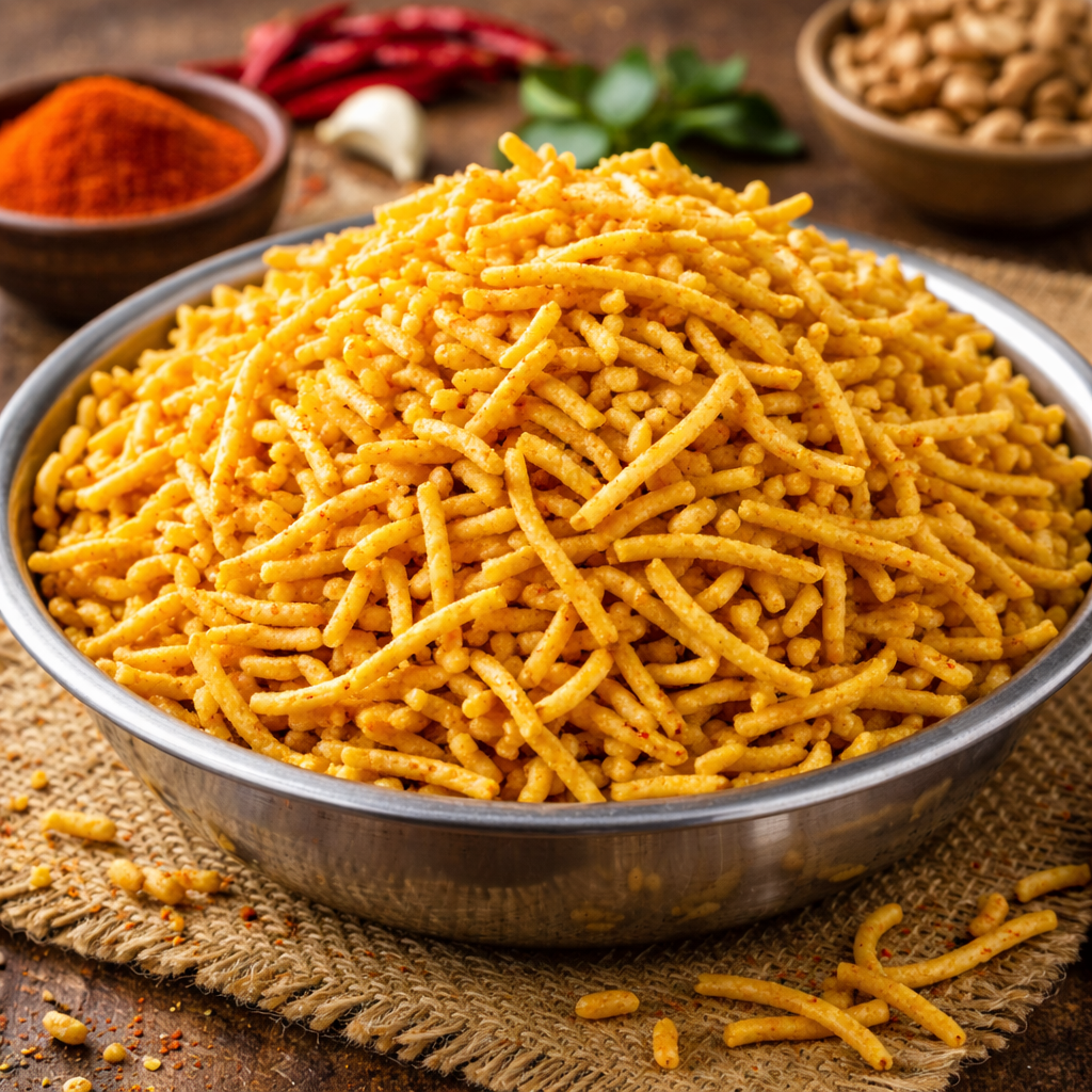 crunchy component during festivals like Diwali and Sankranti, often used as a topping for chaat, poha, or in mixtures